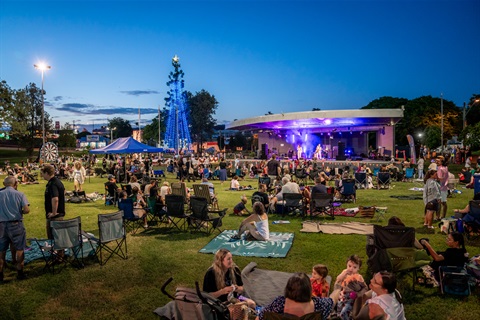 Families are encouraged to bring picnic blankets and camping chairs to relax and enjoy the evening.